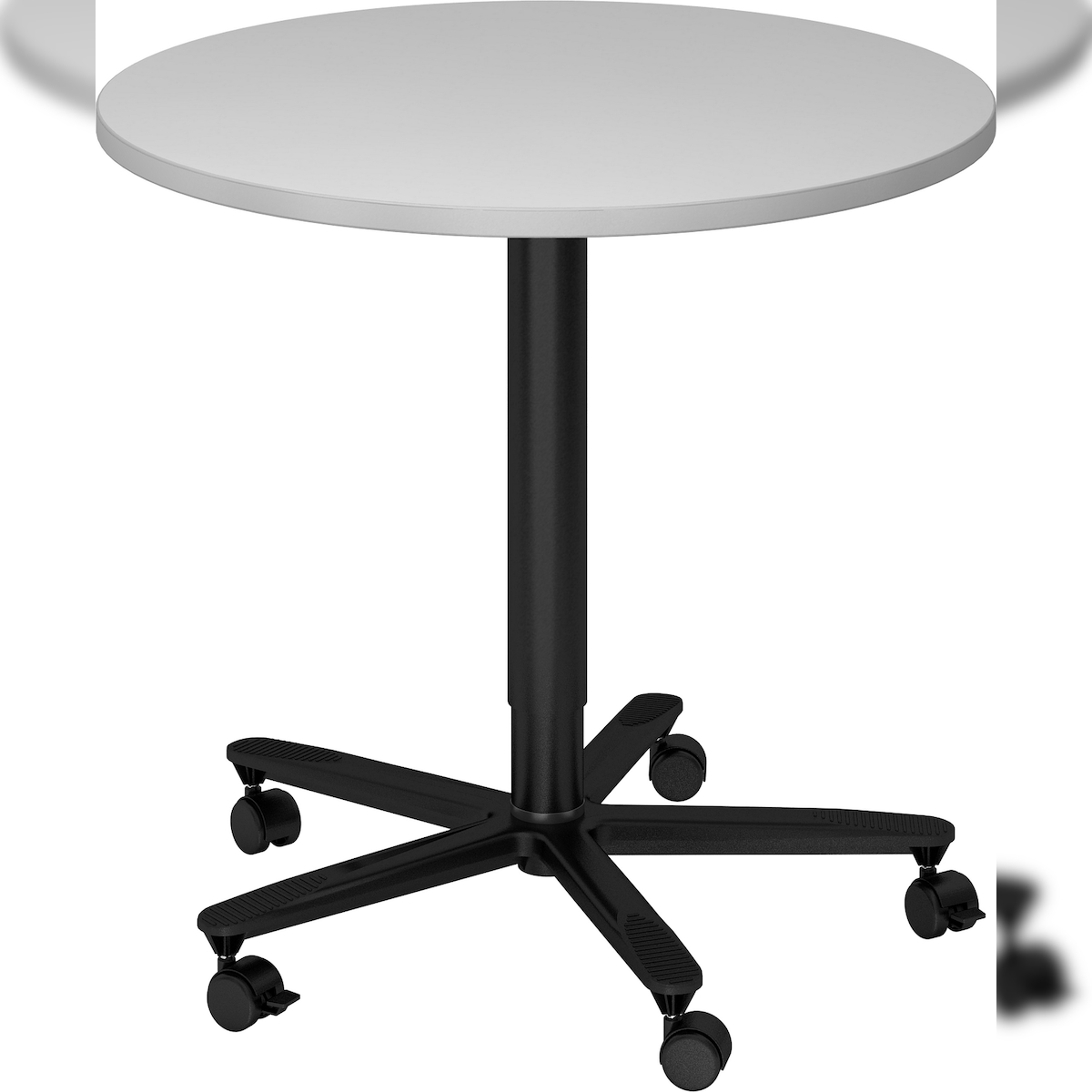 bümö Säulenhubtisch höhenverstellbar, Stehtisch Büro, Bistrotisch rund 80 x 80 cm - Besprechungstisch grau, Stehtisch Holz-Platte, Säule aus Metall