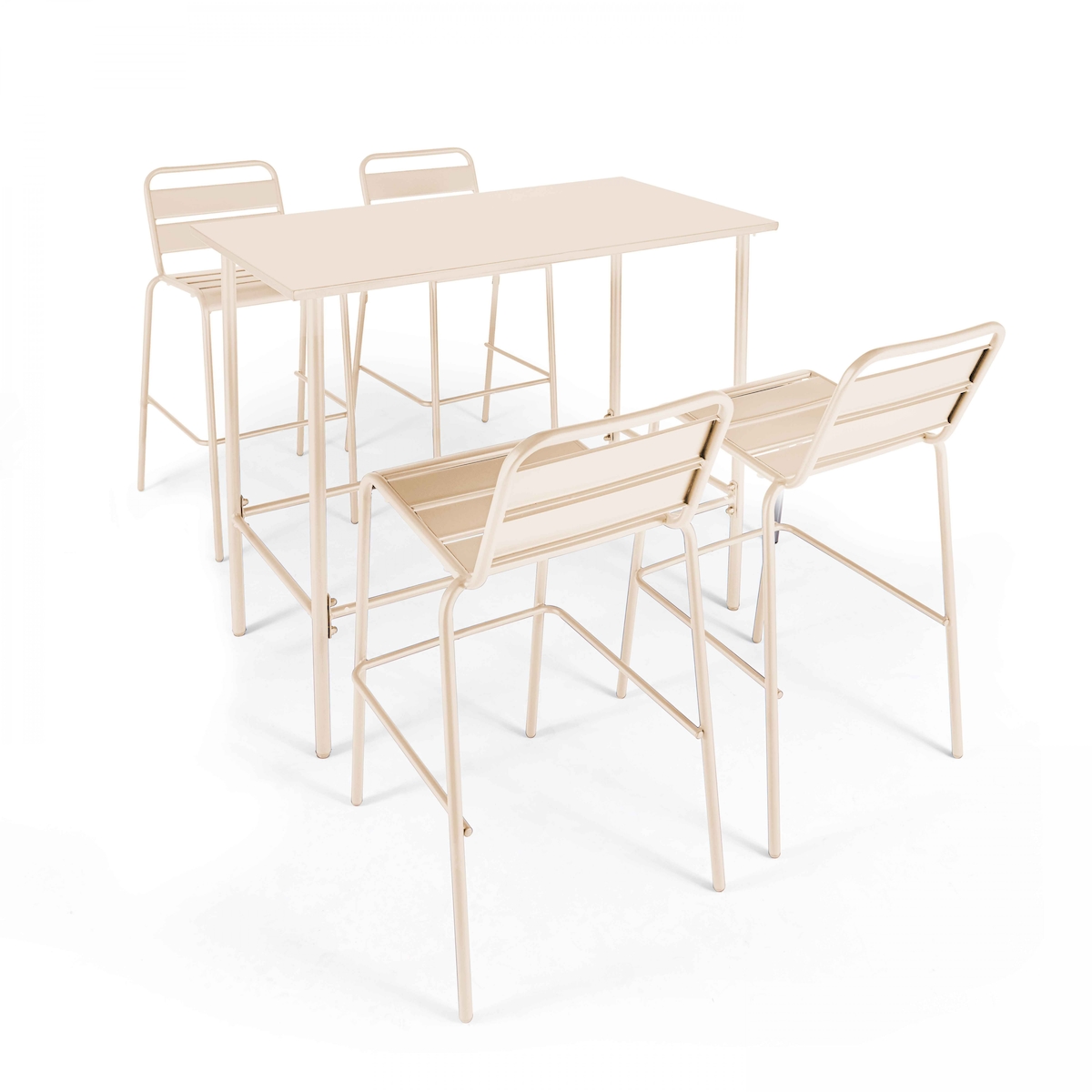 Oviala Business Set aus Stehtisch und 4 Barstühlen aus elfenbeinfarbenem Metall - Oviala
