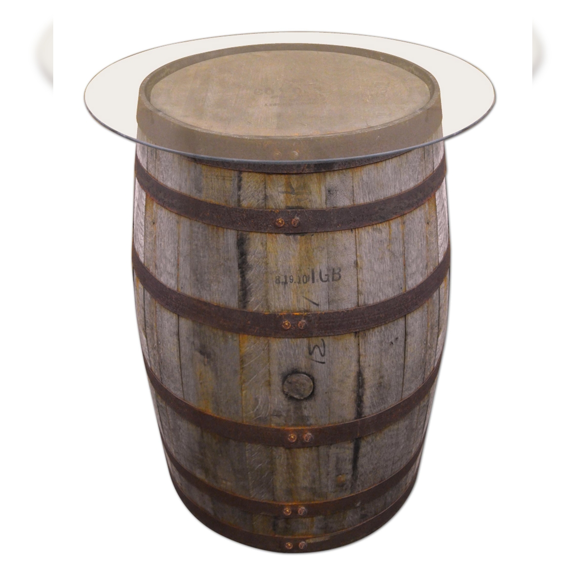 Temesso 190L Originales schottisches Whiskyfass als Stehtisch mit Glasplatte, Eichenfass, Holzfass, Holzbehandlung: natur
