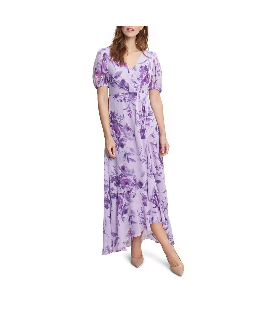 Gina Bacconi Womens Elda Long Printed Dress With Surplice Neckline Short Sleeve - Lilac - Size 12 UK | Gina Bacconi Sale | Discount Designer Brands