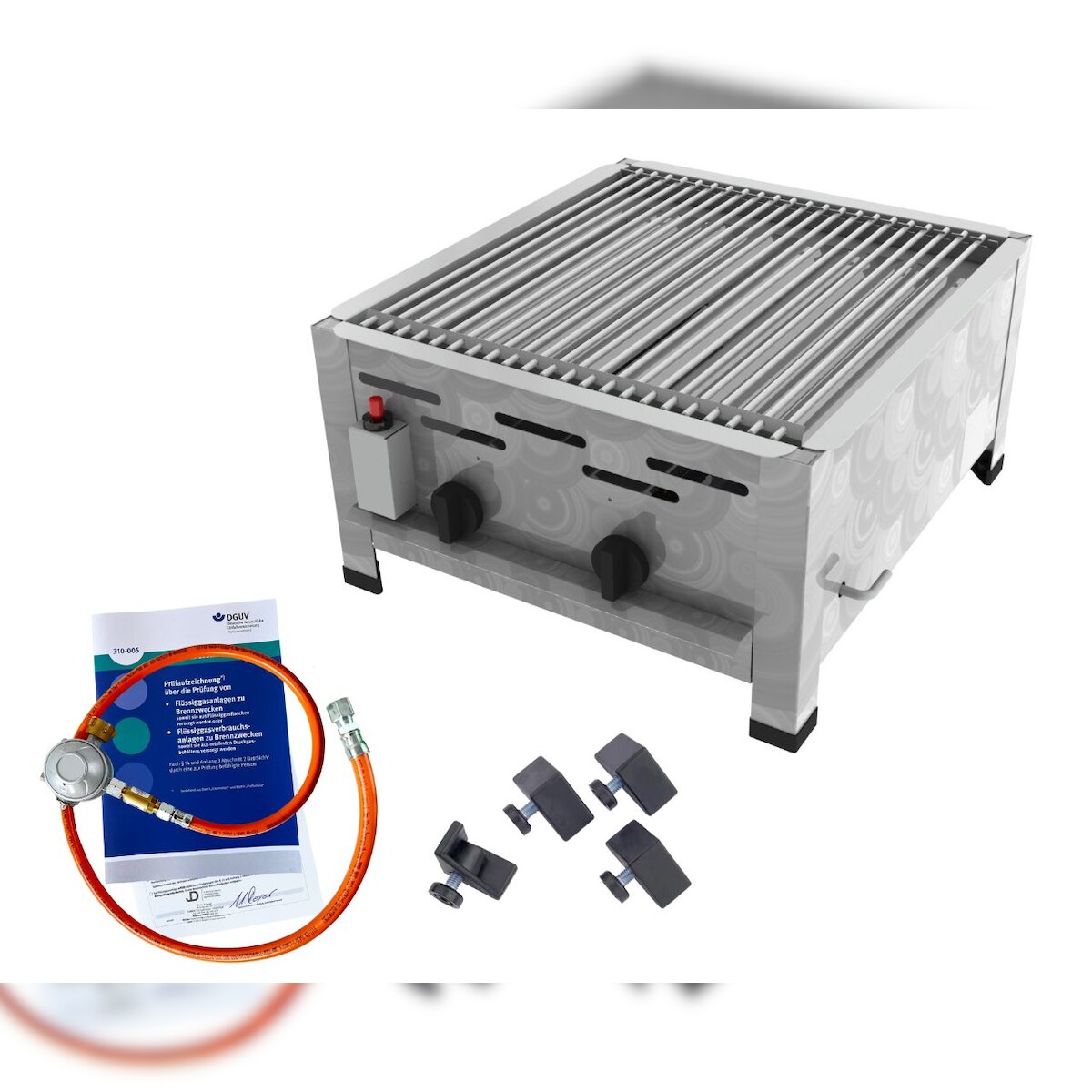 ChattenGlut Gasbräter 2-flammig 7,3kW Tischgerät Einzelne Edelstahlstäbe als Rost mit DGUV