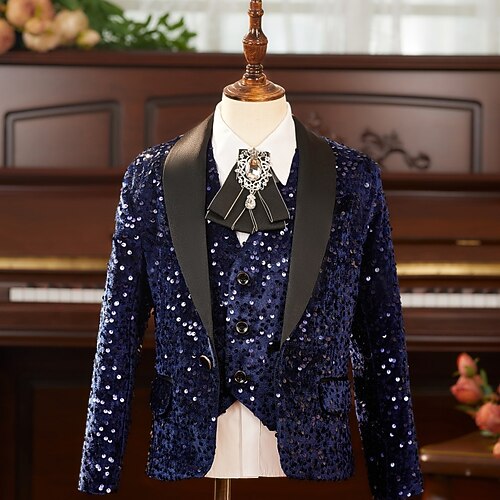Completo da fedi nuziali per bambini, 3 pezzi, blazer gilet pantaloni da ragazzo, abito formale, casual, da esterno, da festa, alla moda, fresco, basic, tinta unita, tasche, bottoni, blu, nero,