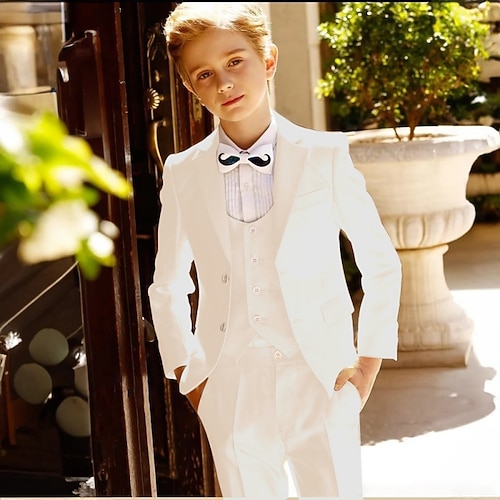 4 pezzi Completo da paggetto Da ragazzo Bambino Tuta Abito formale Blazer, gilet, pantaloni e cravatta Formale Feste San Valentino Di tendenza Fantastico Tinta unica Tasche Bianco Vino Blu marino