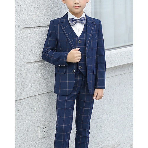 3/4/5 pezzi Completo da paggetto Da ragazzo Bambino Tuta Abito formale Blazer, gilet e pantaloni Formale Feste San Valentino Di tendenza Fantastico A quadri Tasche Blu marino Poliestere