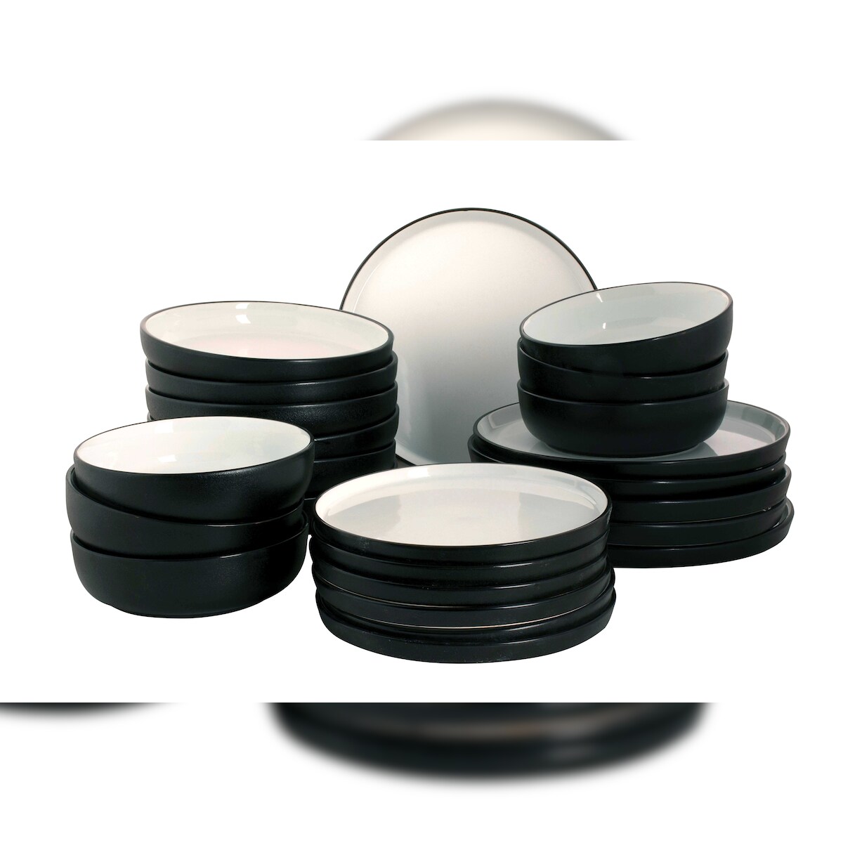 Maastricht Porselein Cosmic Kombiservice, Porzellan, Set aus 24 Teilen, für 6 Personen Gedeck, außen rau schwarze Steinoptik, innen weiß glänzend
