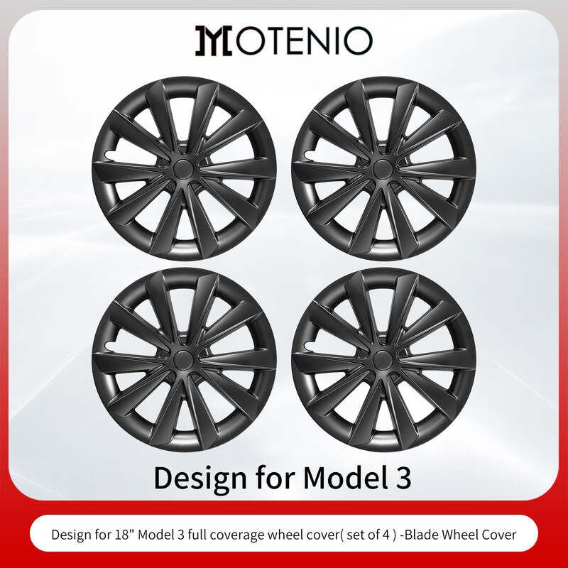 Lot de 4 Cache-Jantes Premium Pour Tesla Model 3 (2017-2023) 18 Pouces Enjoliveurs Noir Mat Style Blade Couverture Complète Jantes Moyeux Caps Protection Couvercle Uniquement Pour Model 3 (2017-2023) Cache-Jantes Accessoires de Remplacement Plastique ABS Installation par Encliquetage Facile à Installer Ajustement Parfait