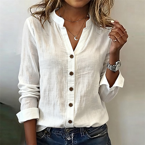 maglietta Occhiello in alto Top eleganti Per donna Nero Bianco Rosa Liscio Pulsante Informale Di tendenza A V Standard S