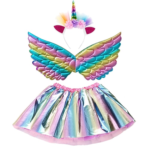 vestito unicorno per ragazze film cosplay vestito da vacanza capodanno vestito blu scuro argento dorato ali copricapo natale halloween carnevale poliestere poliestere / cotone giornata mondiale del