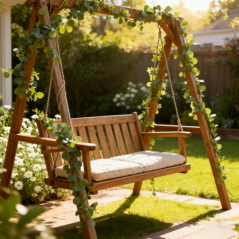 Wei's Moment Pack of 2 Eucalyptus Garland, 180cm, Artificial Garlands, Eucalyptus, Flower Garland with White Flowers, Leaves Garland, Artificial Plant Garland, Green, for Wedding Home Decoration