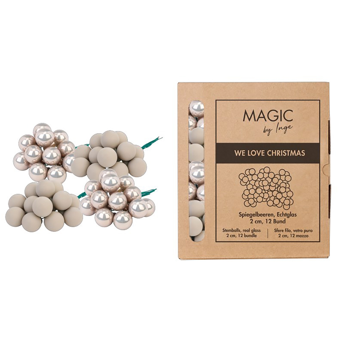 Inges Magic & Goodz 144 Weihnachtskugeln am Draht Glas 2cm Spiegelbeeren matt & glänzend kleine Dekokugeln Weihnachten Mini Christbaumschmuck Weihnachtsdeko Taupe