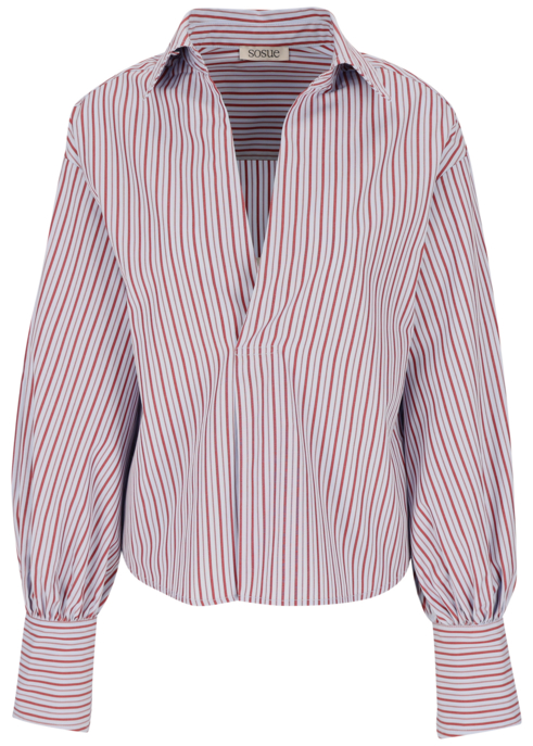 Sosue Bluse "Claire" Gr. M in BLUE BURGUNDY STRI | 100% Baumwolle