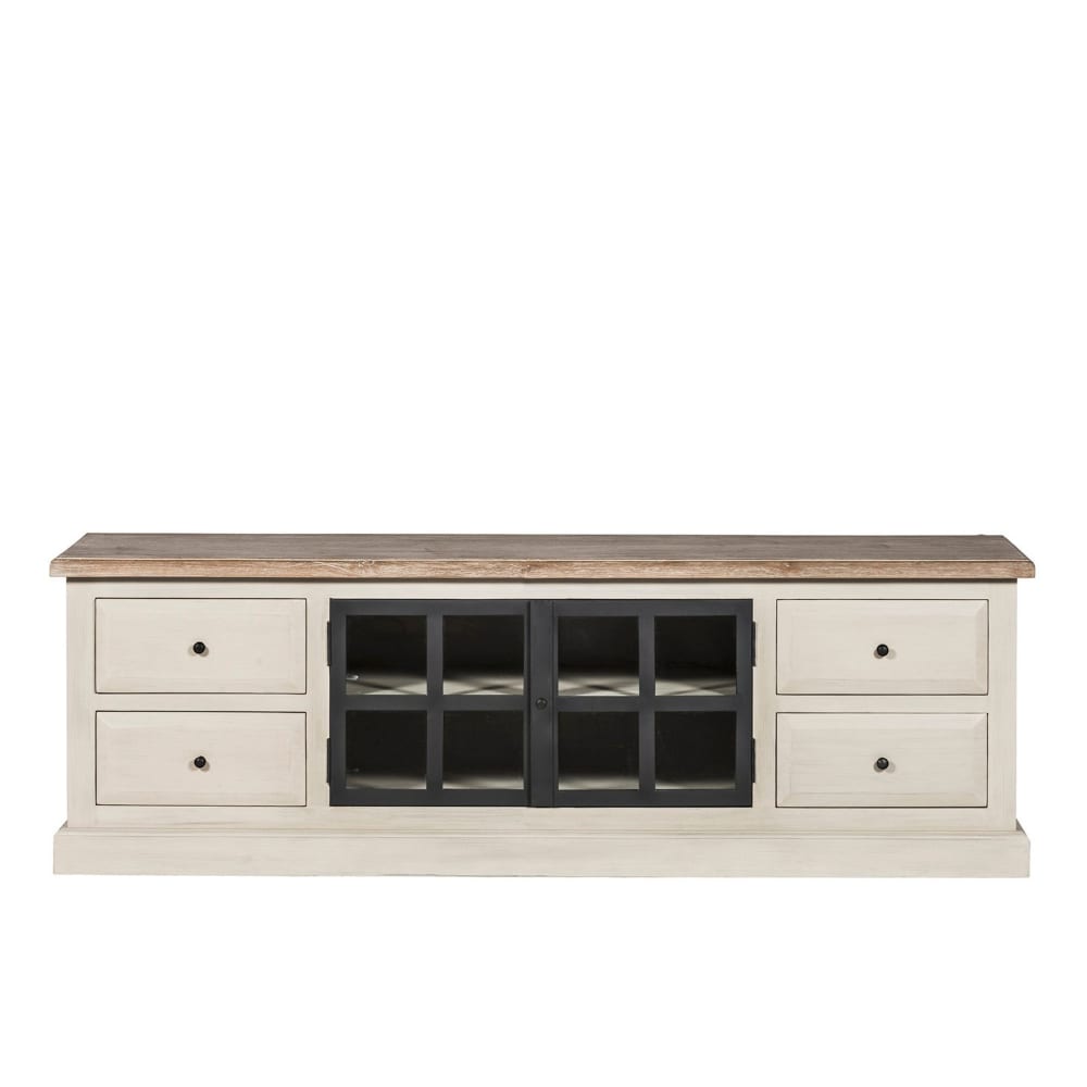 Meuble TV en bois 2 portes vitrées 4 tiroirs L170