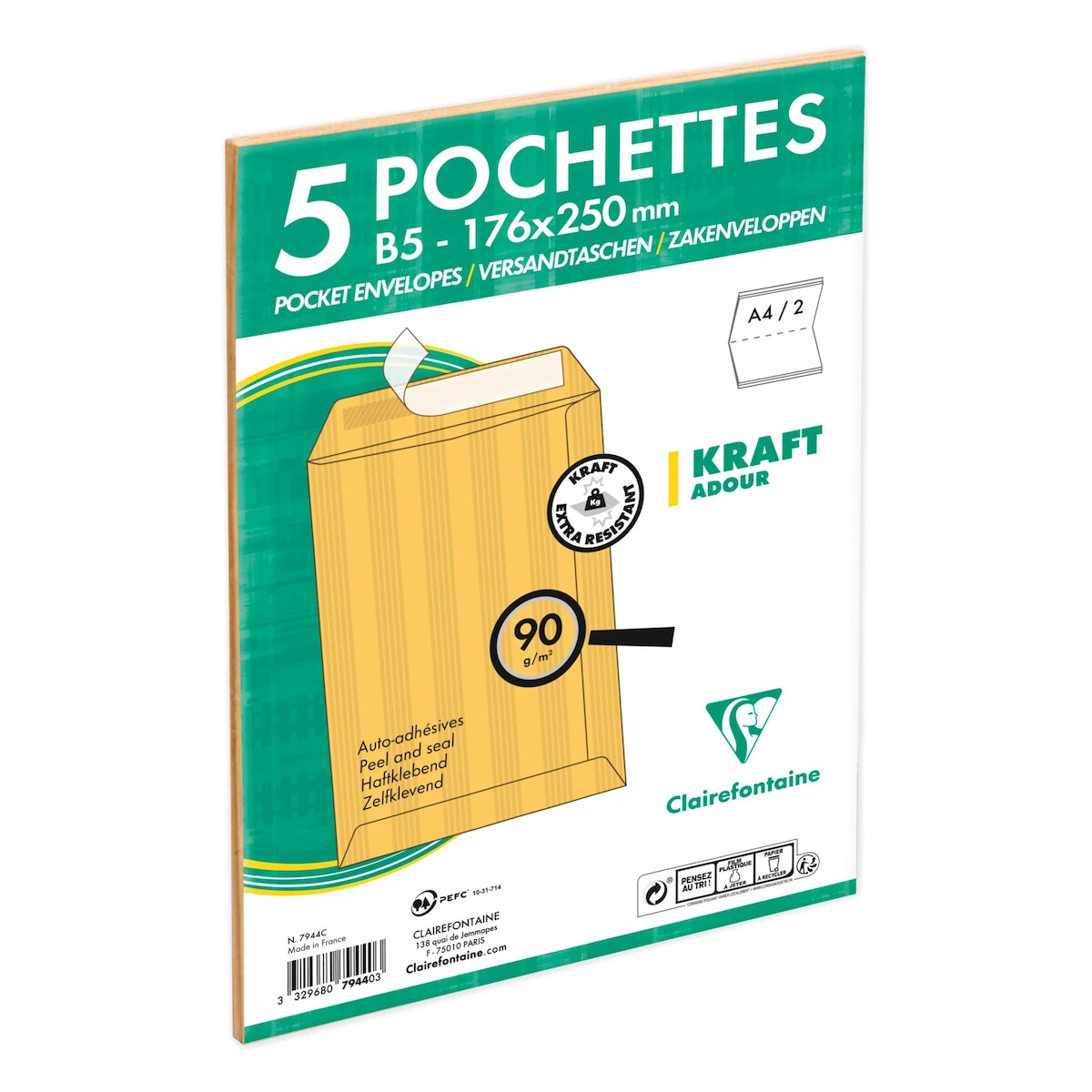 Clairefontaine 250x Versandtaschen haftklebend Kraft 176x250mm/B5 90g - Braun 7944C