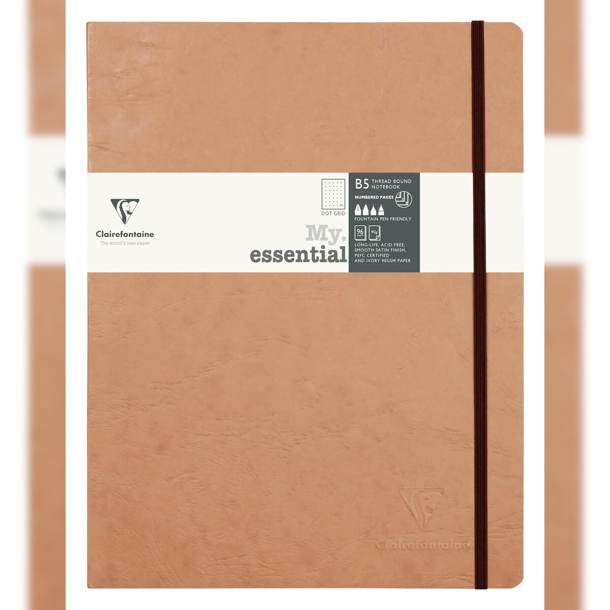 Clairefontaine 5x My.Essential Age Bag, Notizbuch B5 (19x25 cm) mit Fadenbindung, 96 Bl nummeriert, dot, Papier elfenbein 90g - Tabak 79443C