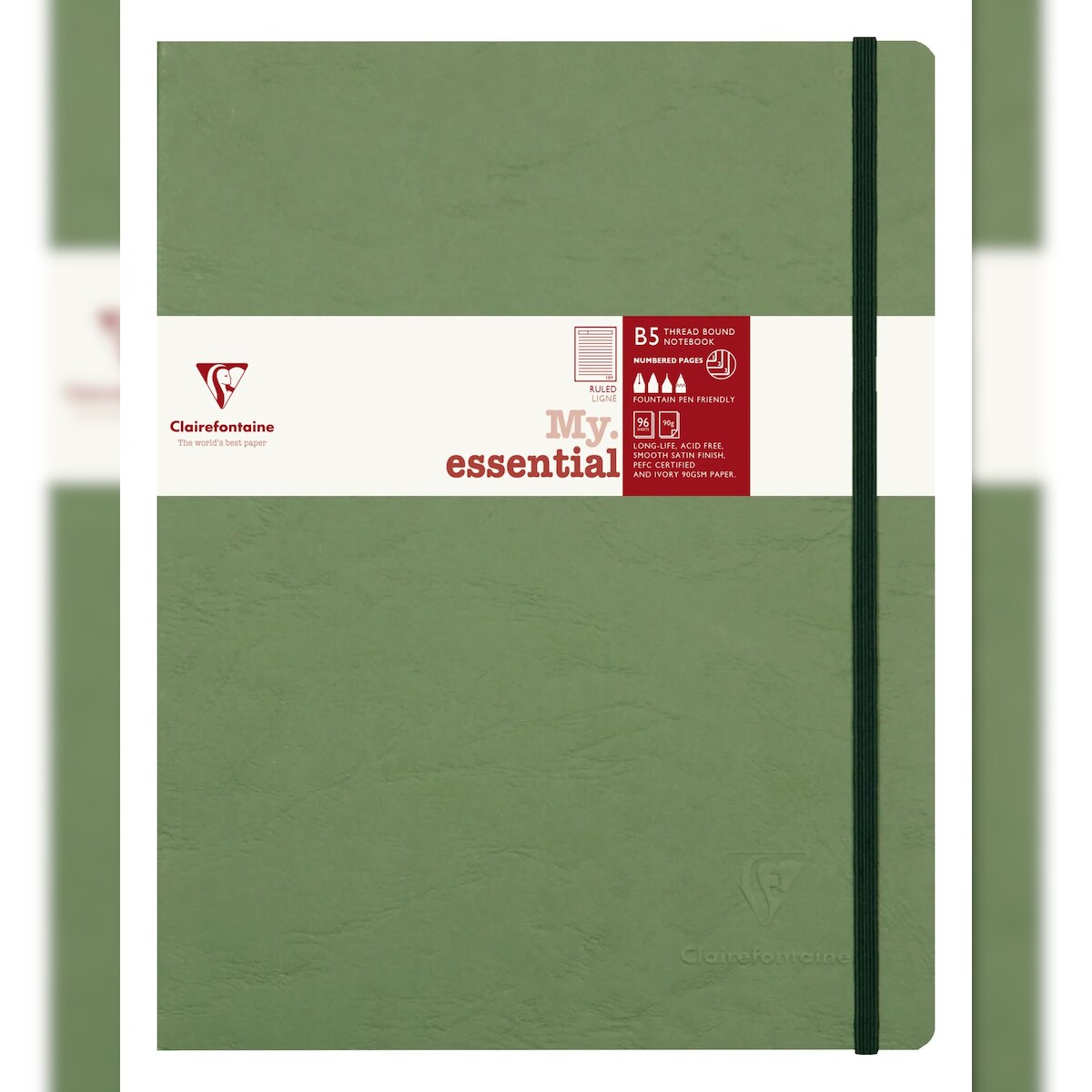 Clairefontaine 5x My.Essential Age Bag, Notizbuch B5 (19x25 cm) mit Fadenbindung, 96 Blatt nummeriert, liniert, Papier elfenbein 90g - Grün 794463C