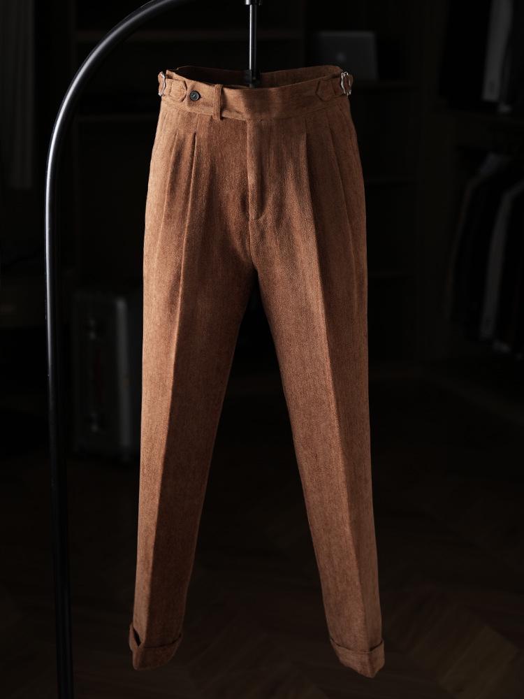 Ruishen Kläder: Tunga ullbyxor med hög midja och raka ben för män - Höst/Vinter cm brun