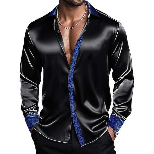 Per uomo Camicia Camicia in raso Camicia elegante Camicia casual Camicia con Bottoni Camicia da Ballo Semplice Matrimonio Feste Argento Rosa Rosso Blu Manica Lunga Bavero Primavera Tutte le stagioni