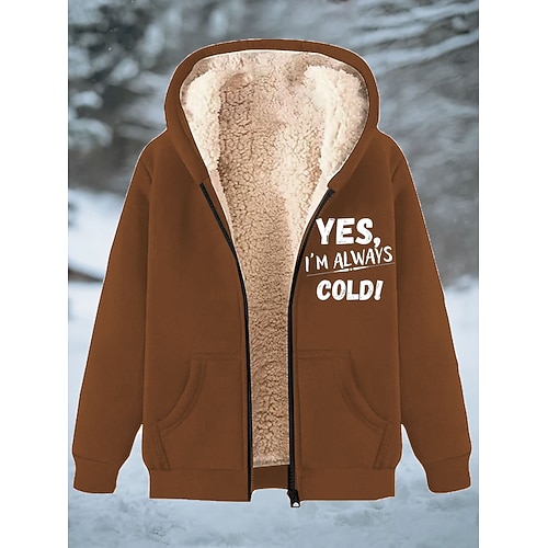 Per donna Cappotto Invernale Caldo Cerniera Tasca Stampato Moda Casual Lettera Streetwear Casuale Regolare Con Cappuccio Vestibilità regolare Manica Lunga Capispalla Blu Nero Rosso Primavera Autunno