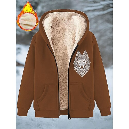 Per donna Cappotto Invernale Caldo Cerniera Tasca Stampato Moda Casual Animale Streetwear Casuale Regolare Con Cappuccio Vestibilità regolare Manica Lunga Capispalla Blu Nero Rosso Primavera Autunno