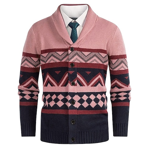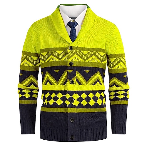 Per uomo Felpa Cardigan Maglione Fair Isle A Coste Maglia Top Regolari Lavorato a maglia Geometrico Collo a scialle Vacanza Moda Casuale Abbigliamento quotidiano Abbigliamento Primavera Autunno