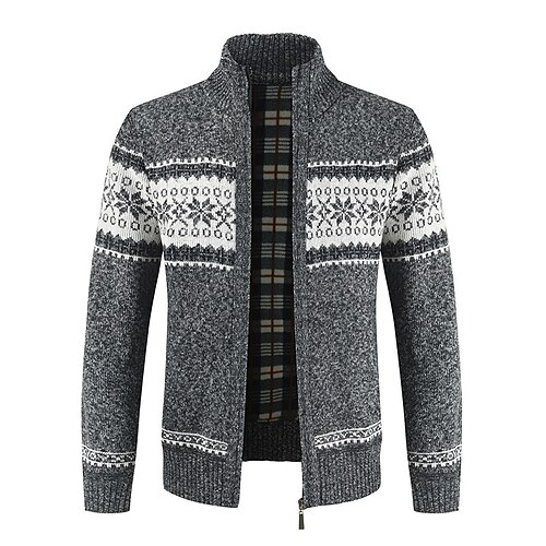 Per uomo Felpa Cardigan Maglione Fair Isle A Coste Maglia Top Regolari Lavorato a maglia Semplice Collo alla coreana Vacanza Moda Casuale Abbigliamento quotidiano Abbigliamento Inverno Primavera