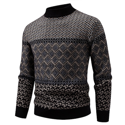 Per uomo Felpa Maglione Maglione Fair Isle A Coste Maglia Top Regolari Lavorato a maglia Slim Fit Semplice Collo Alto Maglieria Moderno Contemporaneo Casuale Abbigliamento quotidiano Abbigliamento