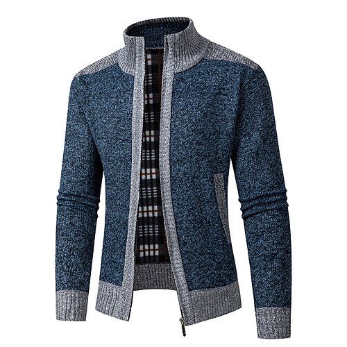 Per uomo Felpa Cardigan Maglione con Zip A Coste Maglia Top Regolari Con zip Patchwork Semplice Collo alla coreana Vacanza Moda Casuale Abbigliamento quotidiano Abbigliamento Primavera Autunno