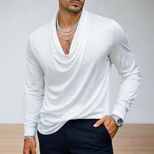 Per uomo Camicia Come la seta Camicia in raso Camicia casual Semplice Casuale Quotidiano Nero Bianco Blu reale Oro Manica Lunga Scollo a Cascata Primavera Primavera Autunno Abbigliamento Arricciato