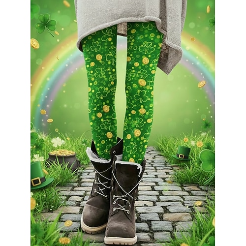 leggings da donna attivi per le vacanze alla moda lunghi lunghi fortunati per il giorno di San Patrizio con stampa trifoglio taglio alto comodi per l'esterno elasticizzati per le vacanze formali per