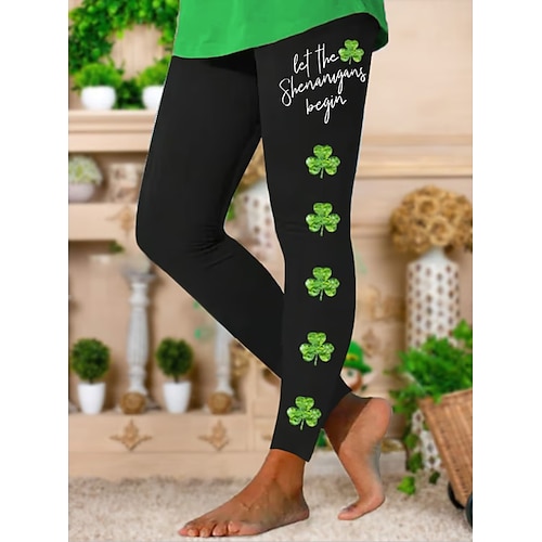 Leggings da donna per il giorno di San Patrizio, comodi, casual, lunghi, a vita alta, con stampa grafica a trifoglio, comodi, elastici, casual, quotidiani, per le vacanze, neri, verde scuro, verde,