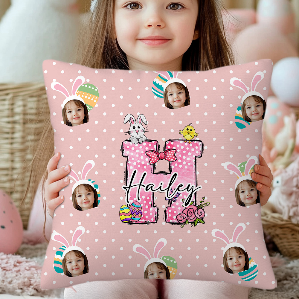 Personalizzato Colorful Polka Dot Cute Easter Bunny 1-3 Photos Soft Throw Pillow Cover con nome Home Decor Easter Party Gift per ragazzi ragazze