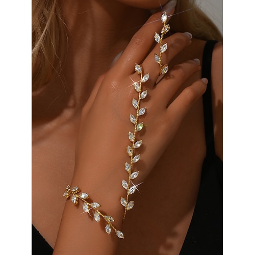 set di bracciale e anello in cristallo foglia oro da donna - eleganti gioielli da mano con strass per feste, eventi serali occasioni speciali