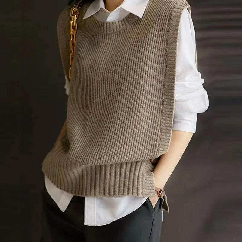 Vest voor Dames Gebreid Oversized Onderhemd Mouwloze Tops Losse Vesttrui Effen Kleur Casual Rond Hals Vest cm lichtbruin