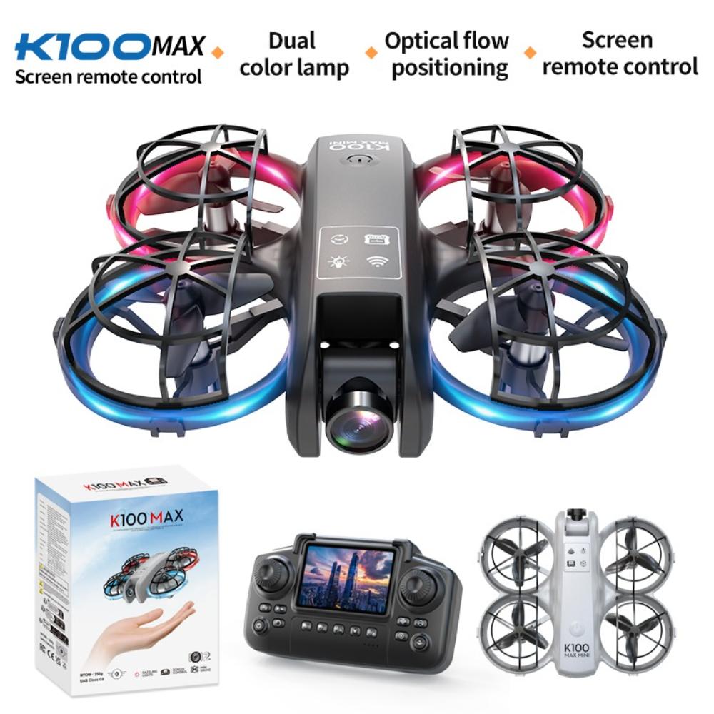 Mini RC Drohne K100 Max Professionell Dual-Kamera Dron mit Bildschirm Fernbedienung Faltbarer RC Quadcopter Spielzeug für Kinder