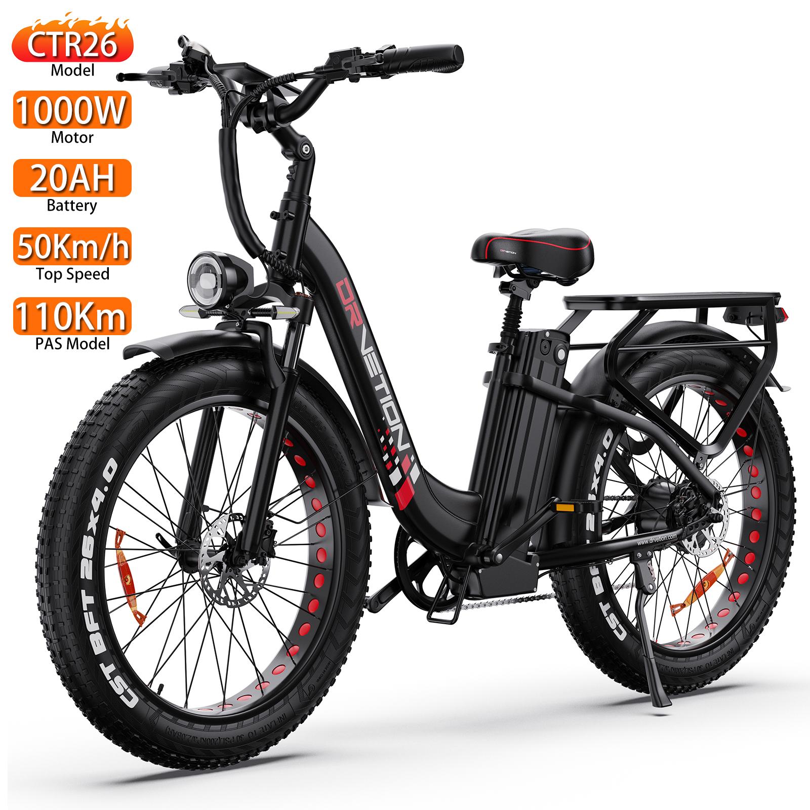 Elektrofahrrad Drvetion 26 1000W Motor Erwachsenen E-Bike 48V 20AH Maximale Reichweite 110Km Höchstgeschwindigkeit 50Km/h Schwarz CTR26 schwarz