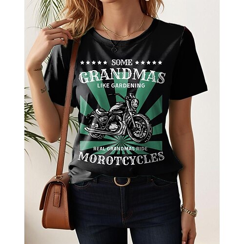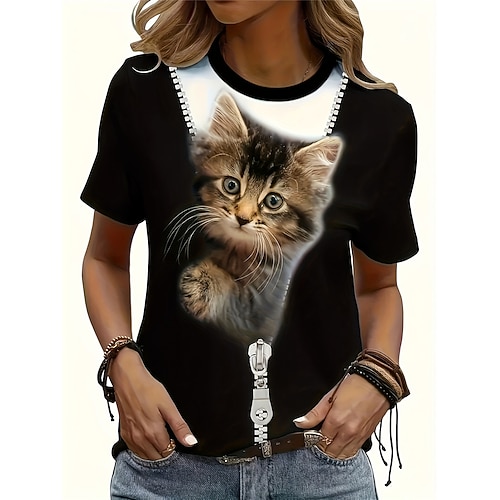 maglietta da donna casual stampa manica corta top regolari quotidiano blu navy estate