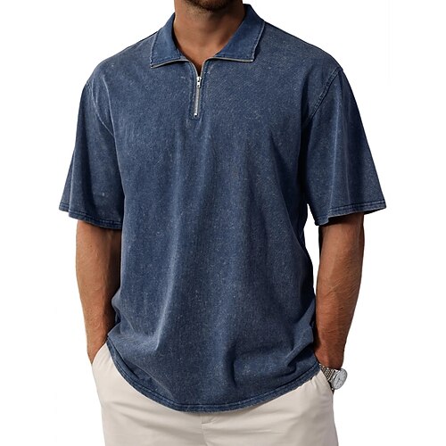 Per uomo Polo con zip Maglia da golf Casuale Ferie Con cerniera Bavero Manica Corta Moda Essenziale Semplice Stile Vintage Zip a un quarto Estate Primavera Primavera Estate Vestibilità regolare Blu