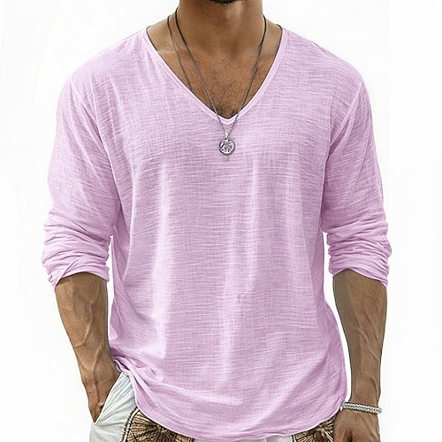 Da uomo Maglietta Camicia a Maniche Lunghe Maglietta in lino Manica Lunga Scollo a V Estate Primavera Primavera Estate Tinta unica Semplice Quotidiano Casual Stile da Strada Puro All'aperto