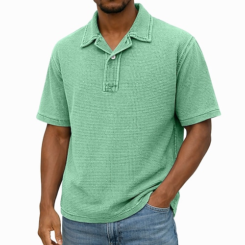 Per uomo Maglia da golf Polo a Maglia Waffle Casuale Vacanza Collo ripiegato Manica Corta Moda Moderno Tinta unica Testurizzato Bottoni Estate Primavera Primavera Estate Vestibilità regolare Verde