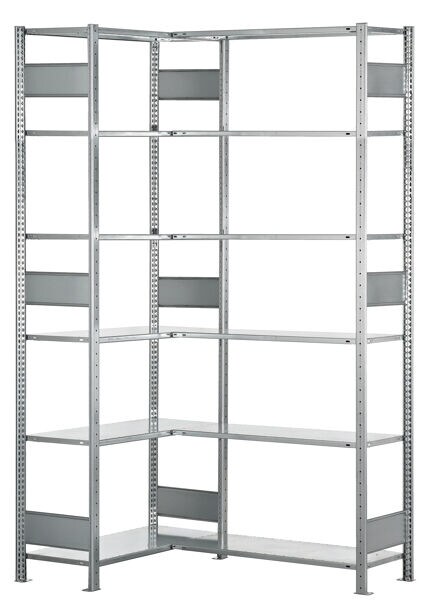 SCHULTE Lagertechnik Eckregal (Felder A + B) 2500 x 1000 x 600, 2x6 Fachböden, Längenriegel, verzinkt