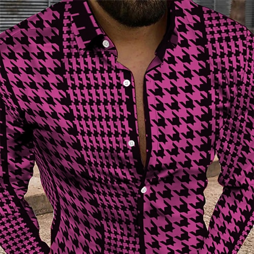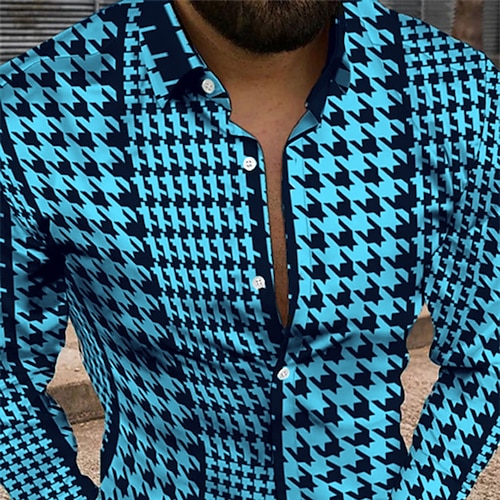Per uomo Geometrica Vintage ▾ Camicia Camicia con bottoni Manica lunga Di tendenza Originale Informale Giornaliero Per eventi Fine settimana Primavera estate Collo ripiegabile 3D Bottone giù Nero