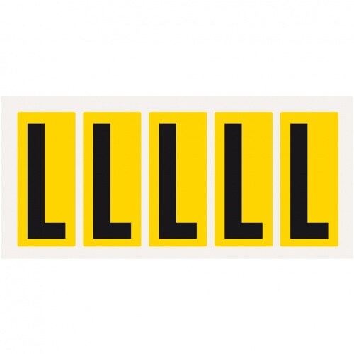 Aufkleber I Buchstabe L, gelb/schwarz, Folie, Schrifthöhe 75mm, 38x88mm, 100 Stück/Packung