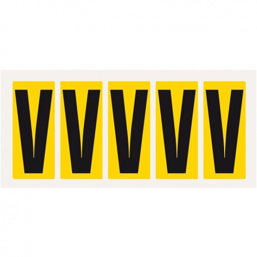 Aufkleber I Buchstabe V, gelb/schwarz, Folie, Schrifthöhe 75mm, 38x88mm, 100 Stück/Packung