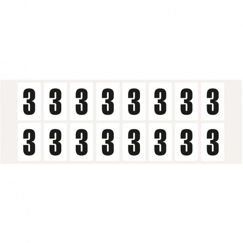 Aufkleber I Ziffer 3, weiß/schwarz, Folie, Schrifthöhe: 30mm, 39x17,7mm, 5 Bogen/VE, 10/Bogen