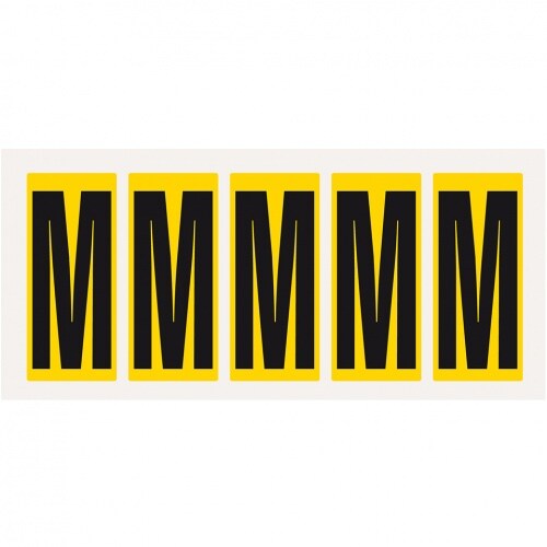 Aufkleber I Buchstabe M, gelb/schwarz, Folie, Schrifthöhe 75mm, 38x88mm, 100 Stück/Packung
