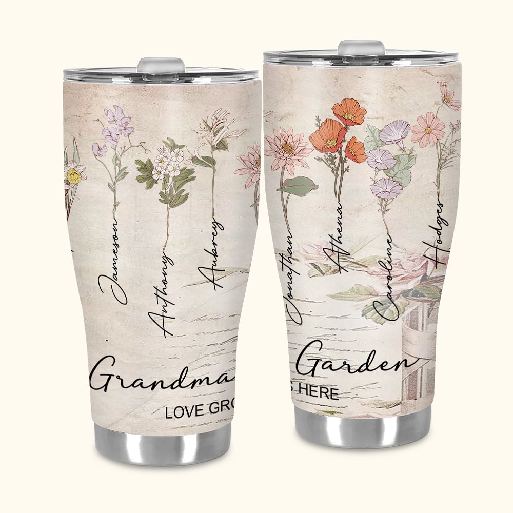 Personlig Nana's Garden Love Grows Here Akvarell fødselsblomst 30 oz buet tumbler bursdagsgave til kvinner jenter