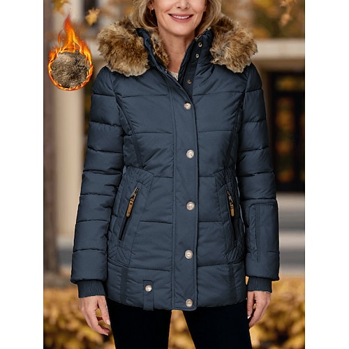 Per donna Piumino Giornaliero Inverno Lungo Cappotto Di tendenza Streetwear Giacca Manica lunga Colletto di pelliccia Collage Nero Rosa Blu marino