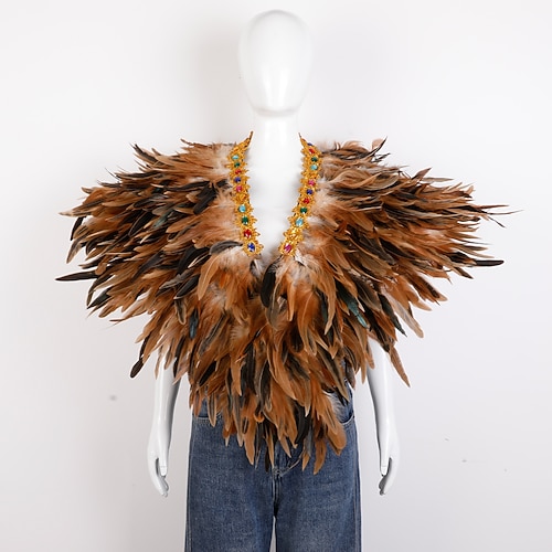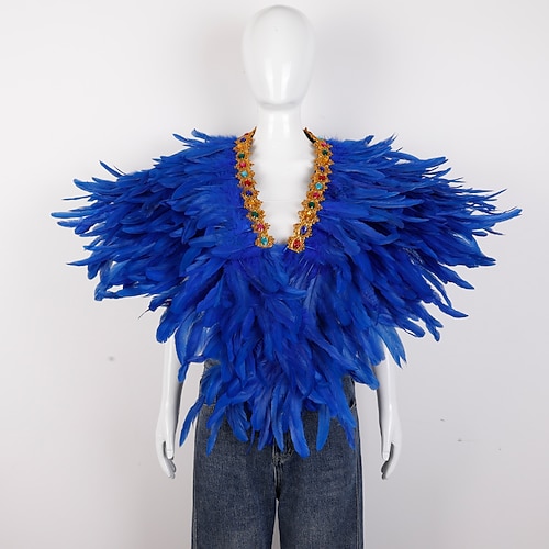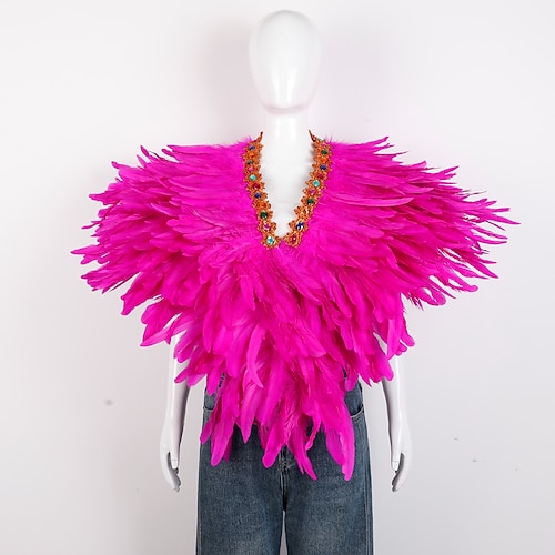 Accessori Samba del Carnevale 2026 Rio Carnevale Cappotto Sciarpa in Piume per Mardi Gras in Viola Verde Oro Poncho in Piume con Collare Gioiello per Donne Costume per Performance al Festival del