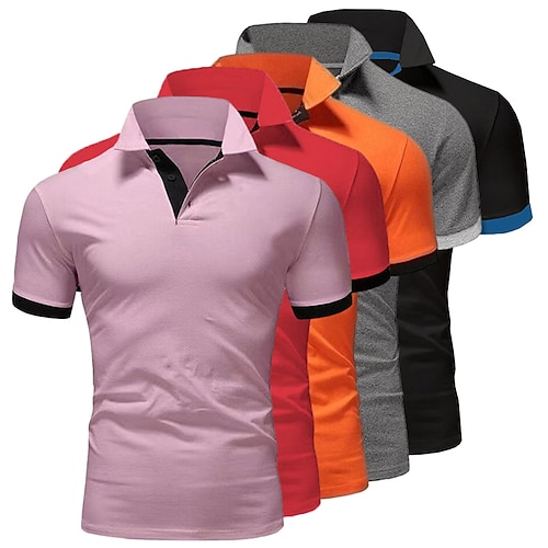 Per uomo Polo Maglia da golf Casuale Sportivo Classico Manica Corta Essenziale Tinta unica Semplice 5 pezzi Confezione multipla Estate Primavera Tutte le stagioni Vestibilità aderente 1 2 3 4 5 6 Polo