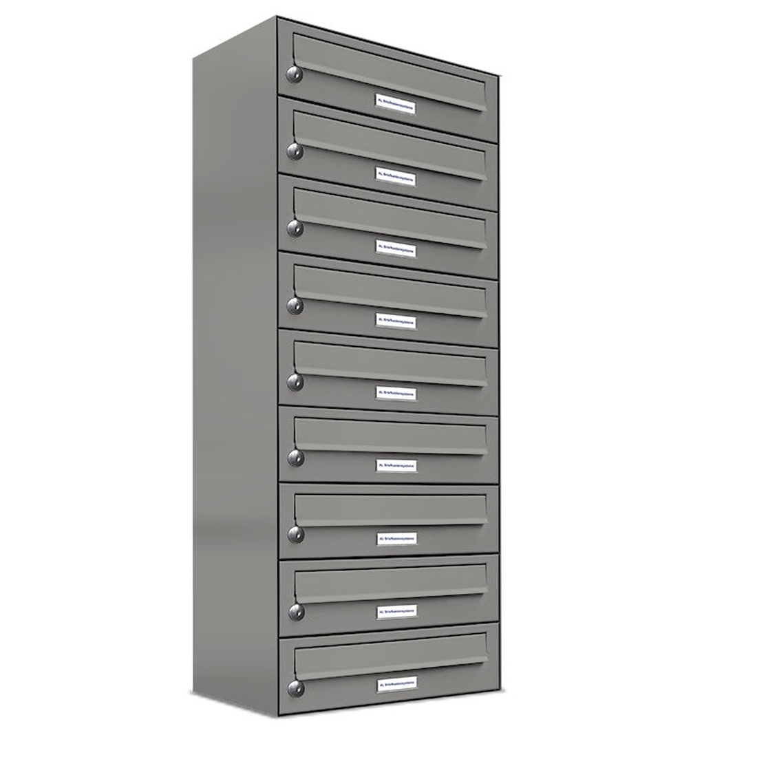 AL Briefkastensysteme 9 Fächer Premium Wand Briefkasten Anlage in RAL 9007 Aluminium Grau, Post A4, robust, wetterfest, Artikelnummer: 132P9EA1P9007